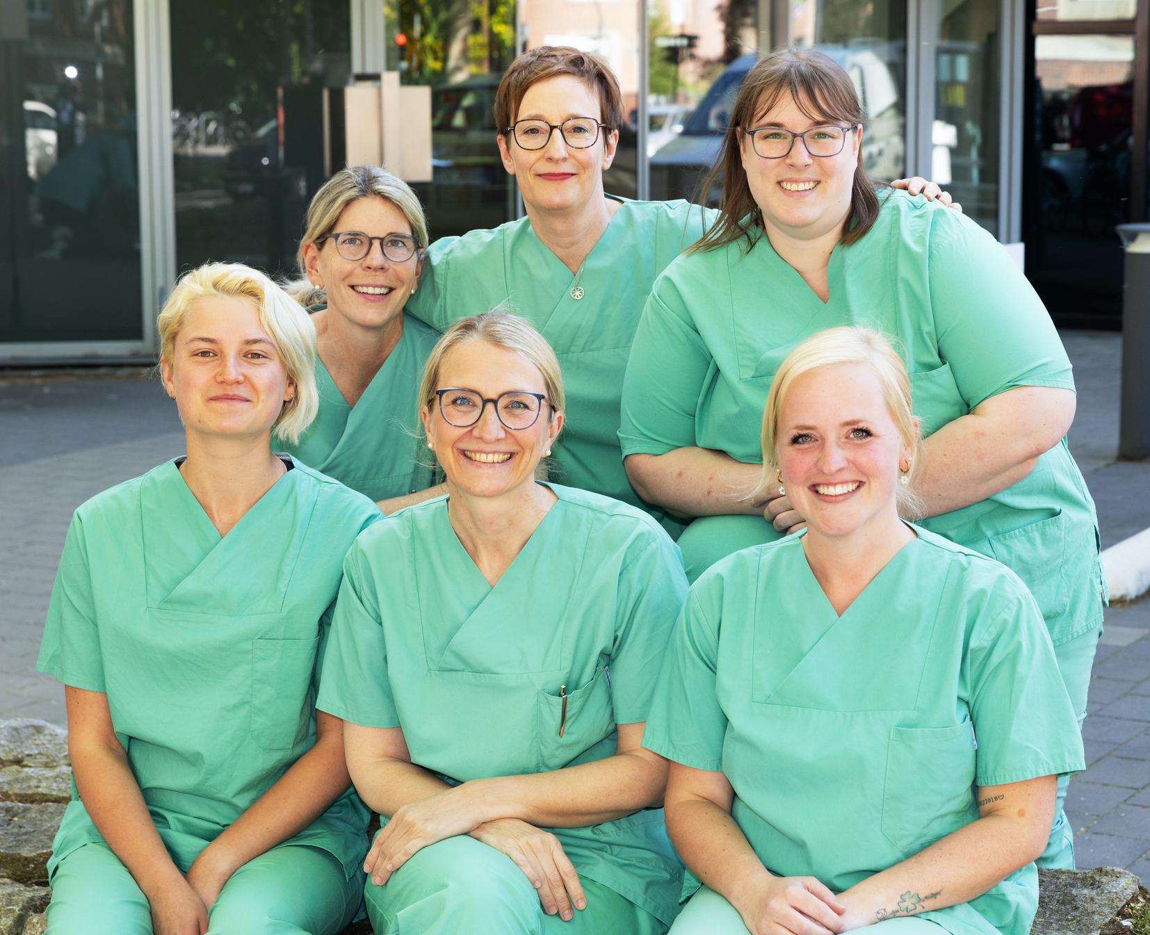 Unser freundliches Team besteht aus Medizinischen Fachangestellten, Operationstechnischen Assistentinnen, Pflegefachkräften sowie weiteren Mitarbeitenden, die sich in der Praxis, im OP und hinter den Kulissen um reibungslose Abläufe kümmern.
