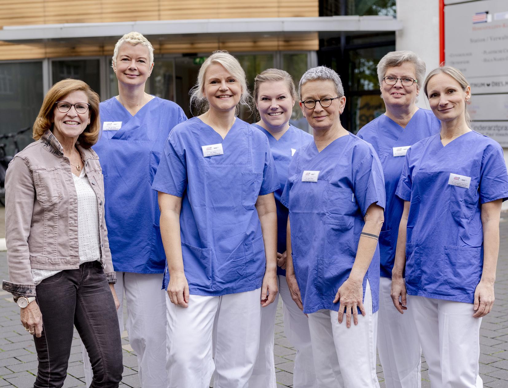 Unser freundliches Team besteht aus Medizinischen Fachangestellten, Operationstechnischen Assistentinnen, Pflegefachkräften sowie weiteren Mitarbeitenden, die sich in der Praxis, im OP und hinter den Kulissen um reibungslose Abläufe kümmern.